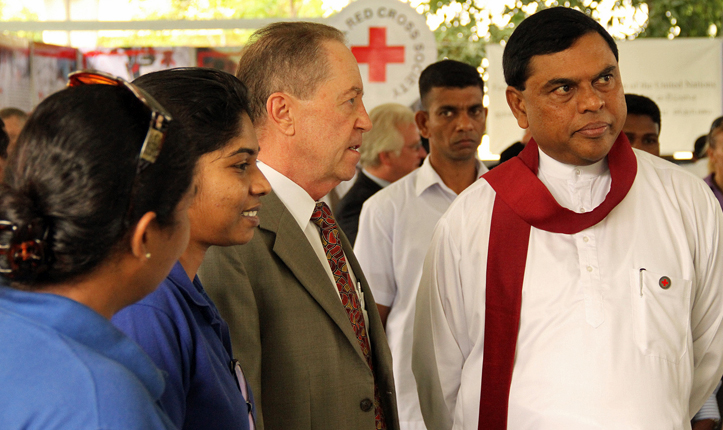 “Moreover, restoring infrastructure and mobilizing returning communities to regain normalcy after a 30 year conflict is a daunting task. It requires systematically designed, well-coordinated and carefully implemented programs. Regrettably these take longer time than we wish for. Being distressed and stretched by those disasters and especially as a developing country, Sri Lanka is short of resources needed for an early recovery. Therefore, I request you to join hands together to approach the vulnerable communities with a solemn humanitarian service.”