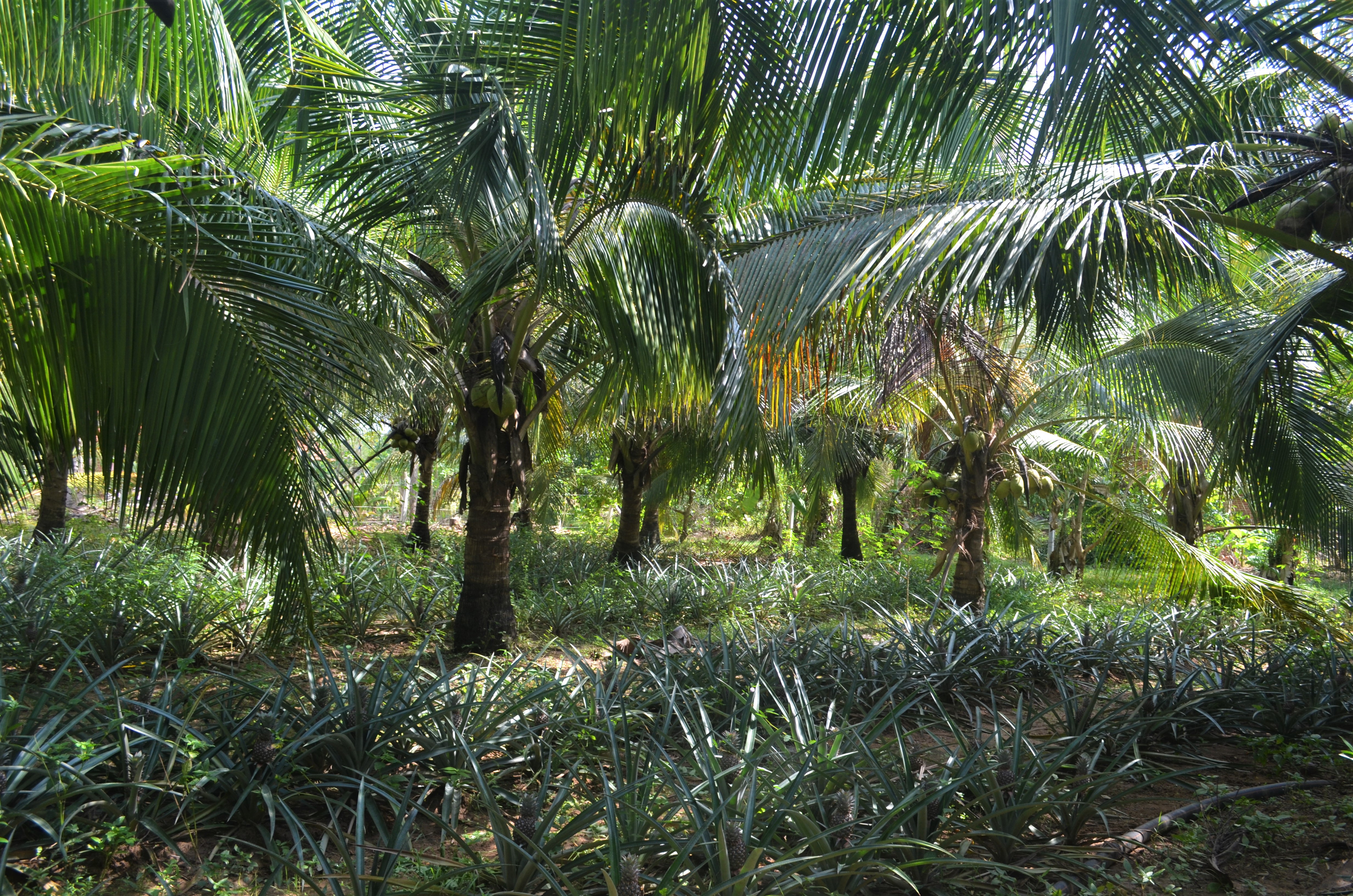 Coconut land with intercropped pineapple plants
