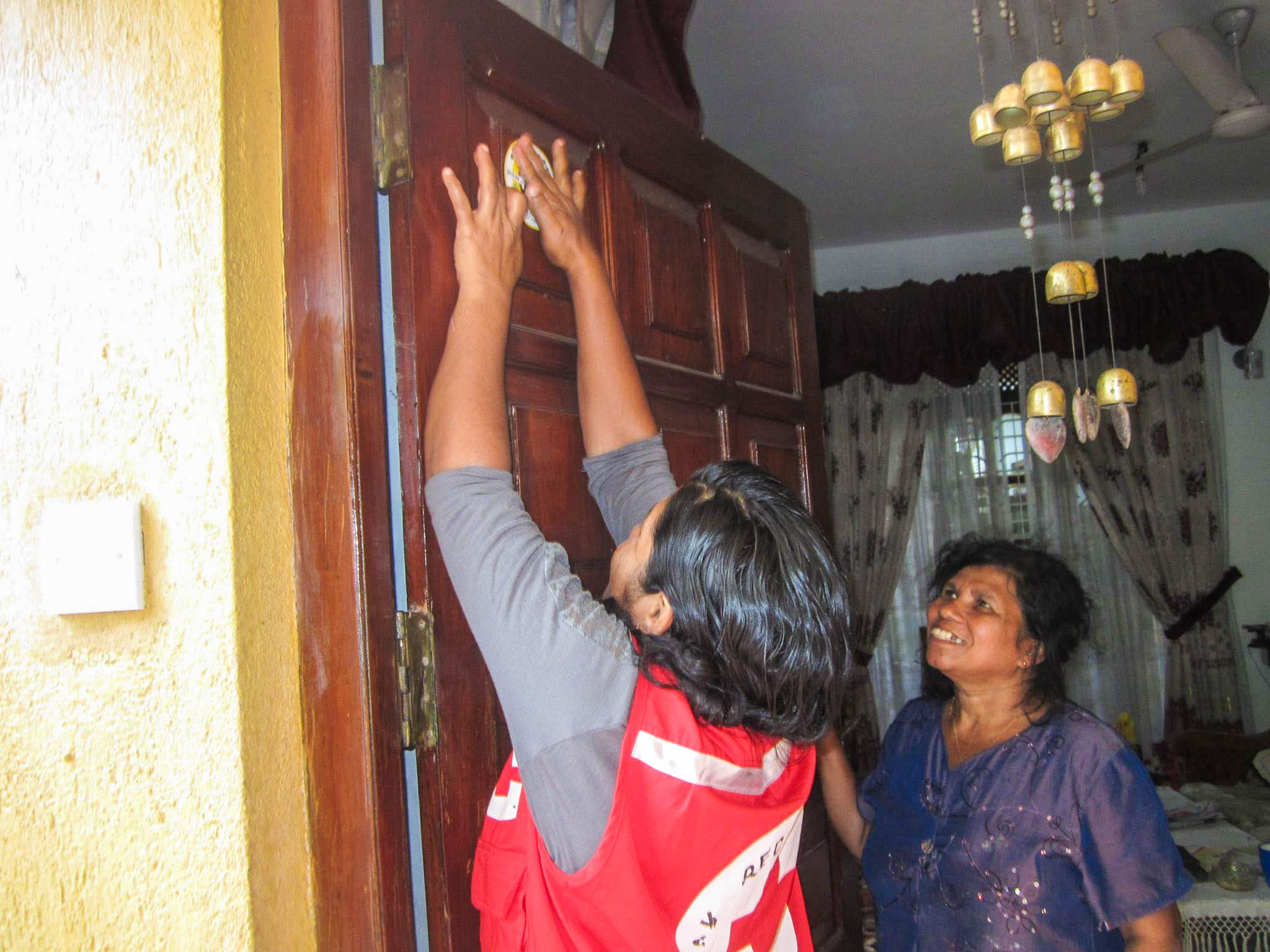 SLRCS Colombo Branch coordinating with Divisional Secretariat, Municipal Council, Medical Officer of Health, Civil Society, Sri Lanka Police conducted a door to door campaign inspecting the environment of the households and whether they are kept clean and free of mosquito breeding sites.