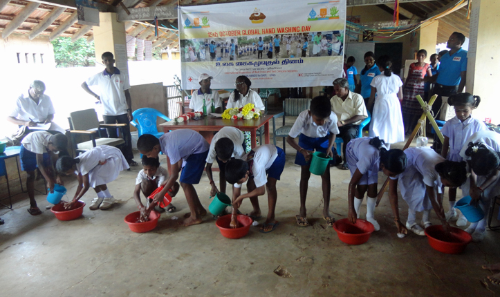 In Jaffna District Sri Lanka Red Cross Society (SLRCS) Jaffna branch through the Integrated Sanitation Health Education and Hygiene Promotion project whose goal is to contribute to the health status of most needy populations of Point Pedro division Jaffna district by improving access to sanitation , health education and hygiene practices with funding from International Federation of Red cross and Red Crescent Societies (IFRC) from 15th -16th October hosted hand washing events.