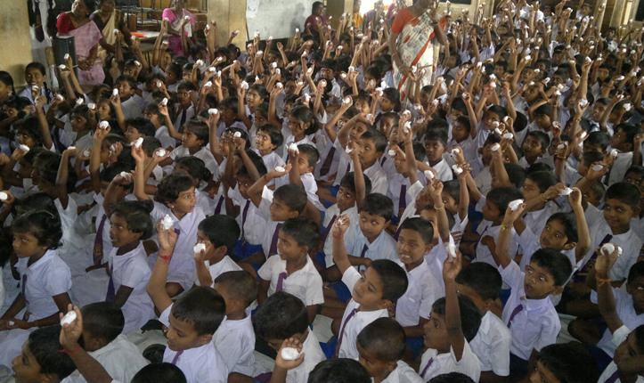 This was in all the 14 target schools in Point Pedro where the project is currently implementing Child to Child schools health clubs and the school latrine construction program. The events targeted 8,000 school children and teachers and over 8,000 bars of soaps were distributed. The children also take part in proper hand-washing demonstrations and there was a drama on the same.