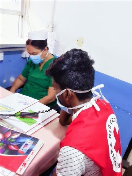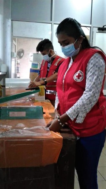 Hence, with the objective of alleviating the burden of the taxed medical staff, SLRCS volunteers were deployed to assist them. Stationed at general admission points, the eye clinic and the pharmacy, the volunteers were assigned to answer phone calls received from patients and to link them with the relevant doctors. They did this whilst supporting the medical staff to manage the crowd within hospital premises by issuing tokens for patients and guiding them to the required points, lessening the risk of roaming and making them comfortable during the pandemic situation. In addition to this, the youth volunteers engaged in the sorting, packing and labeling process of medicine at the pharmacy section.