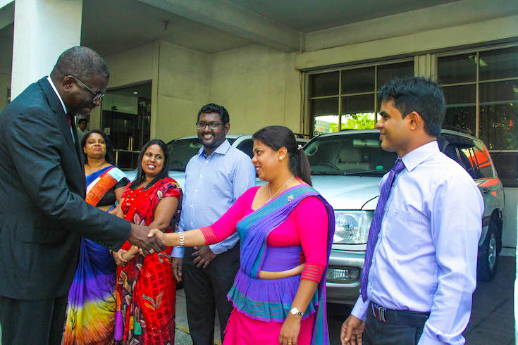 The Secretary General who’s on an official visit after an invitation by the President of SLRCS Mr. Jagath Abeysinghe earlier during the day paid a visit to the National Headquarters of the Society in Colombo. Here he met with the staff of SLRCS.