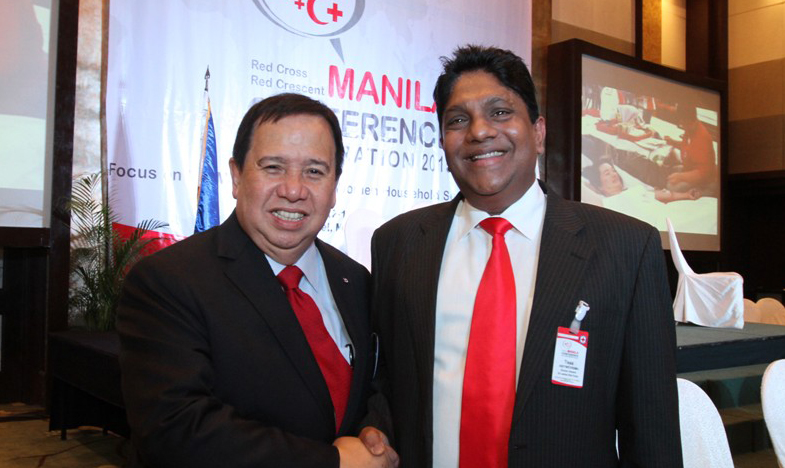 Director General of Sri Lanka Red Cross Society Mr. Tissa Abeywickrama (right) with the Chairman of Philippines Red Cross Senator Richard Gordon.