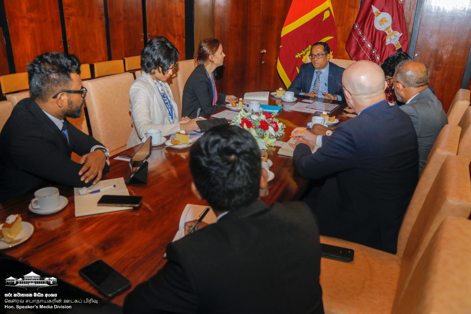 The delegation included Ms. Séverine Chappaz, Head of the ICRC Delegation in Sri Lanka; Mr. John Entwistle, Head of the South Asia Delegation of the International Federation of Red Cross and Red Crescent Societies; Dr. Mahesh Gunasekara, Director General of the Sri Lanka Red Cross Society and Ms. Ruwanthi Jayasundara, Communications Manager of the ICRC Sri Lanka. Also present at the meeting was Mr. Chaminda Kularatne, Chief of Staff and Deputy Secretary General of the Parliament of Sri Lanka.